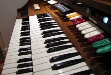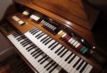 Again, to the left of the Solo manual there are a further three switches that add a percussive staccato tone when you play when you press a key. The pitches are 4’, 2⅔’ and 2’. There are a further three faders to the right of the keyboards that allow you to control the sound level and expression of these tones.