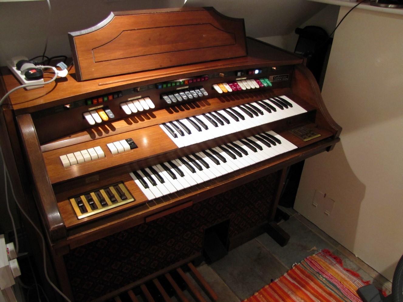 The console has built in lighting around the stop tabs and switches meaning that you can always see clearly what each stop tab will do.
