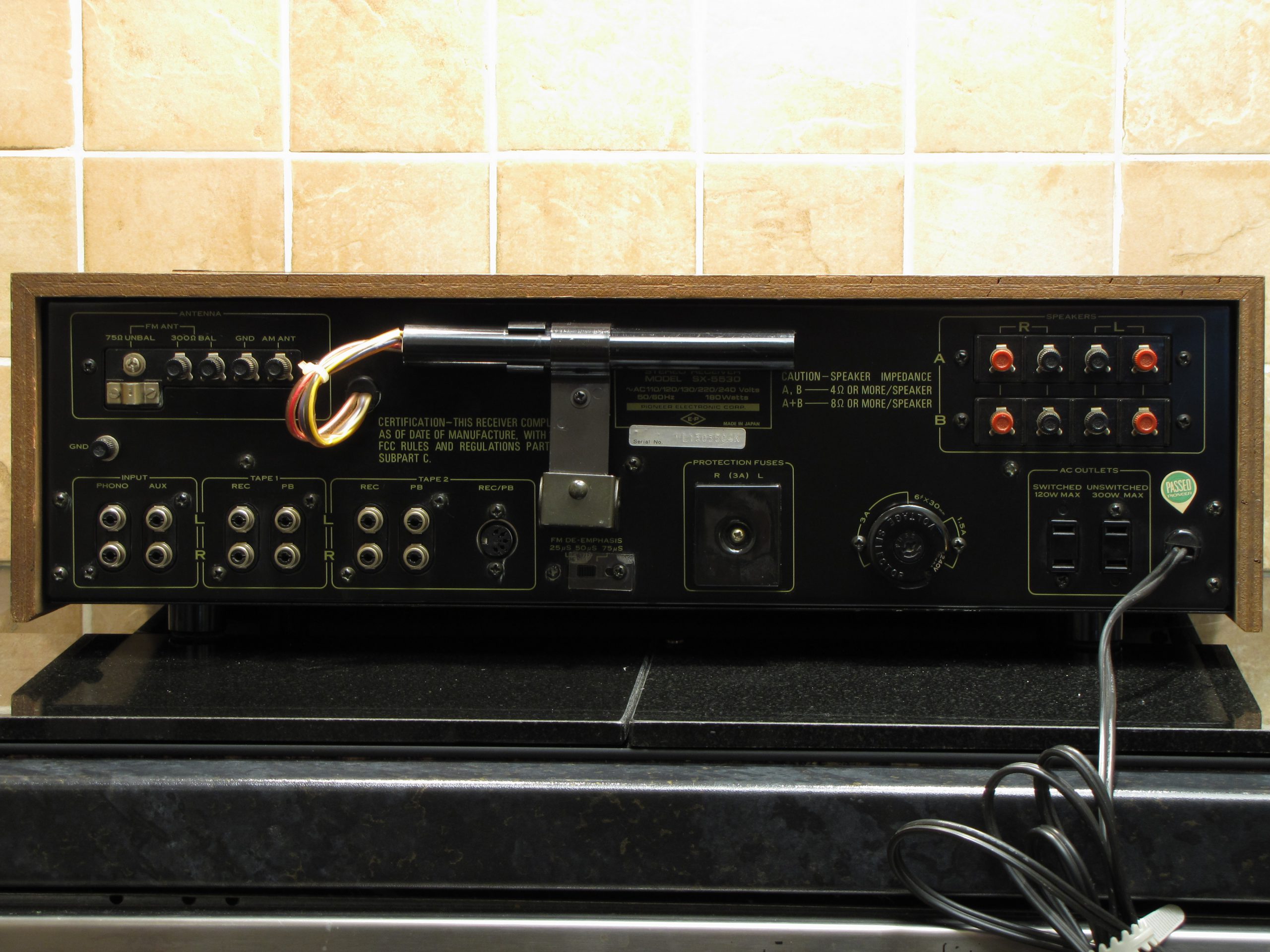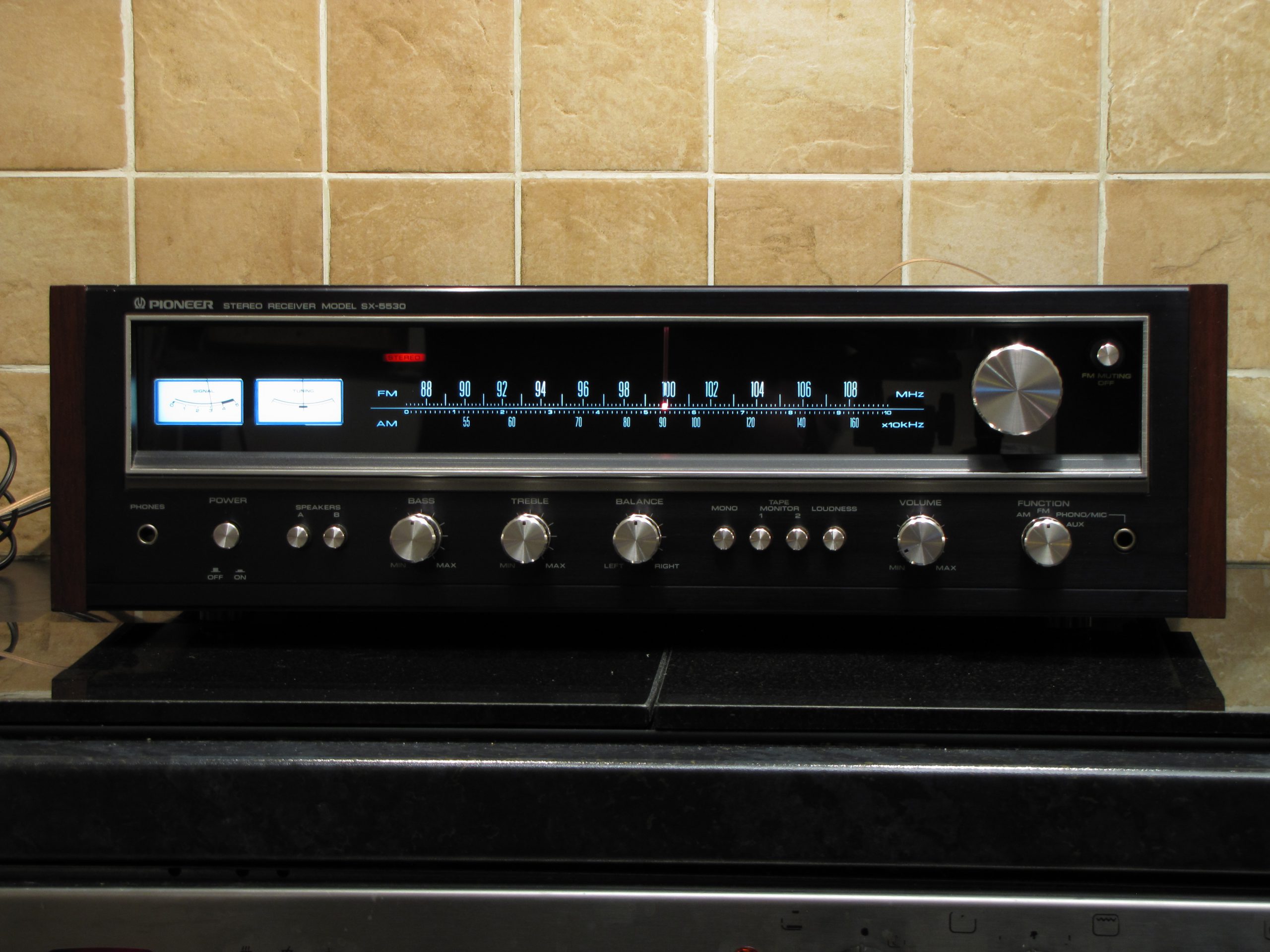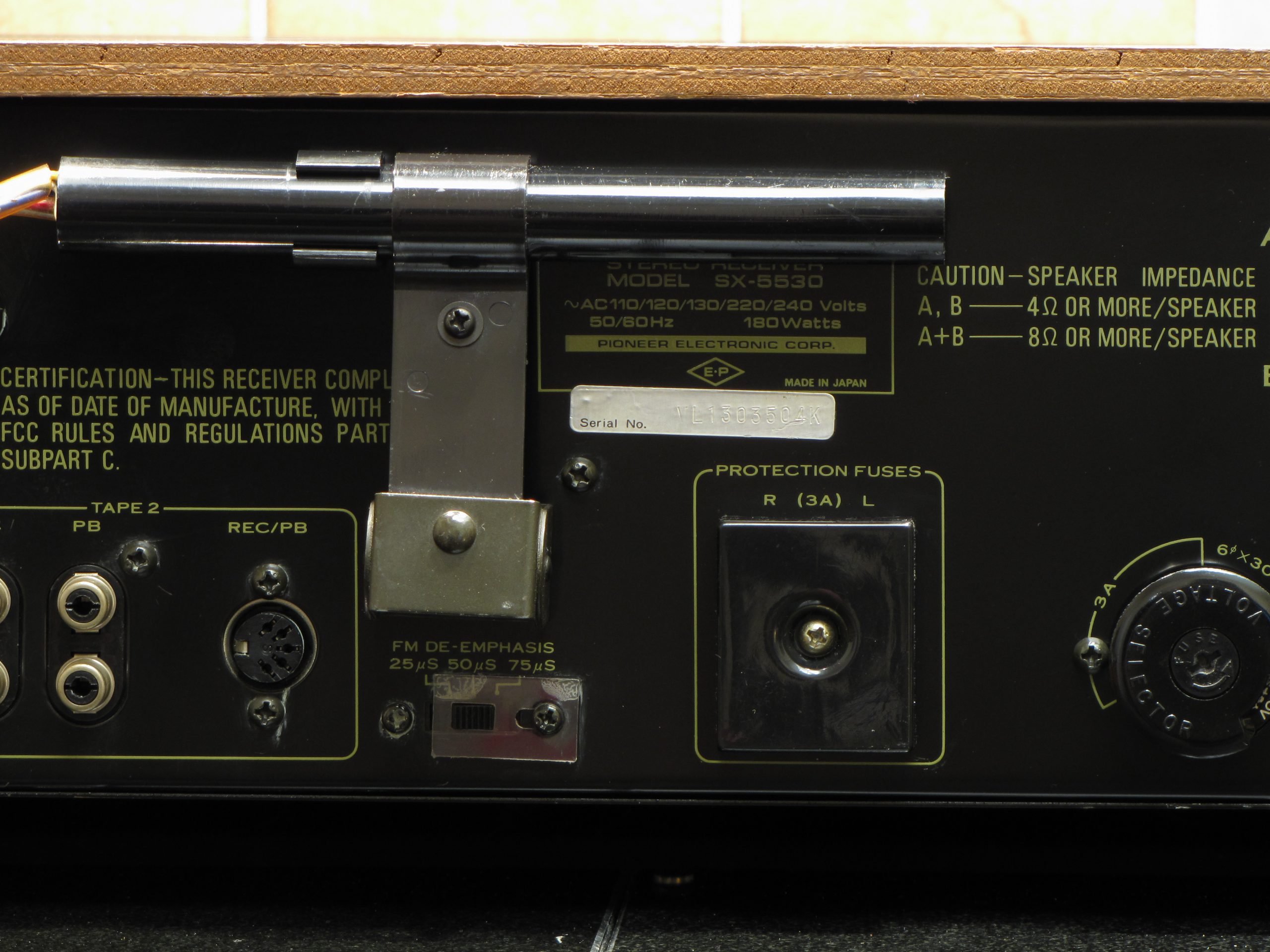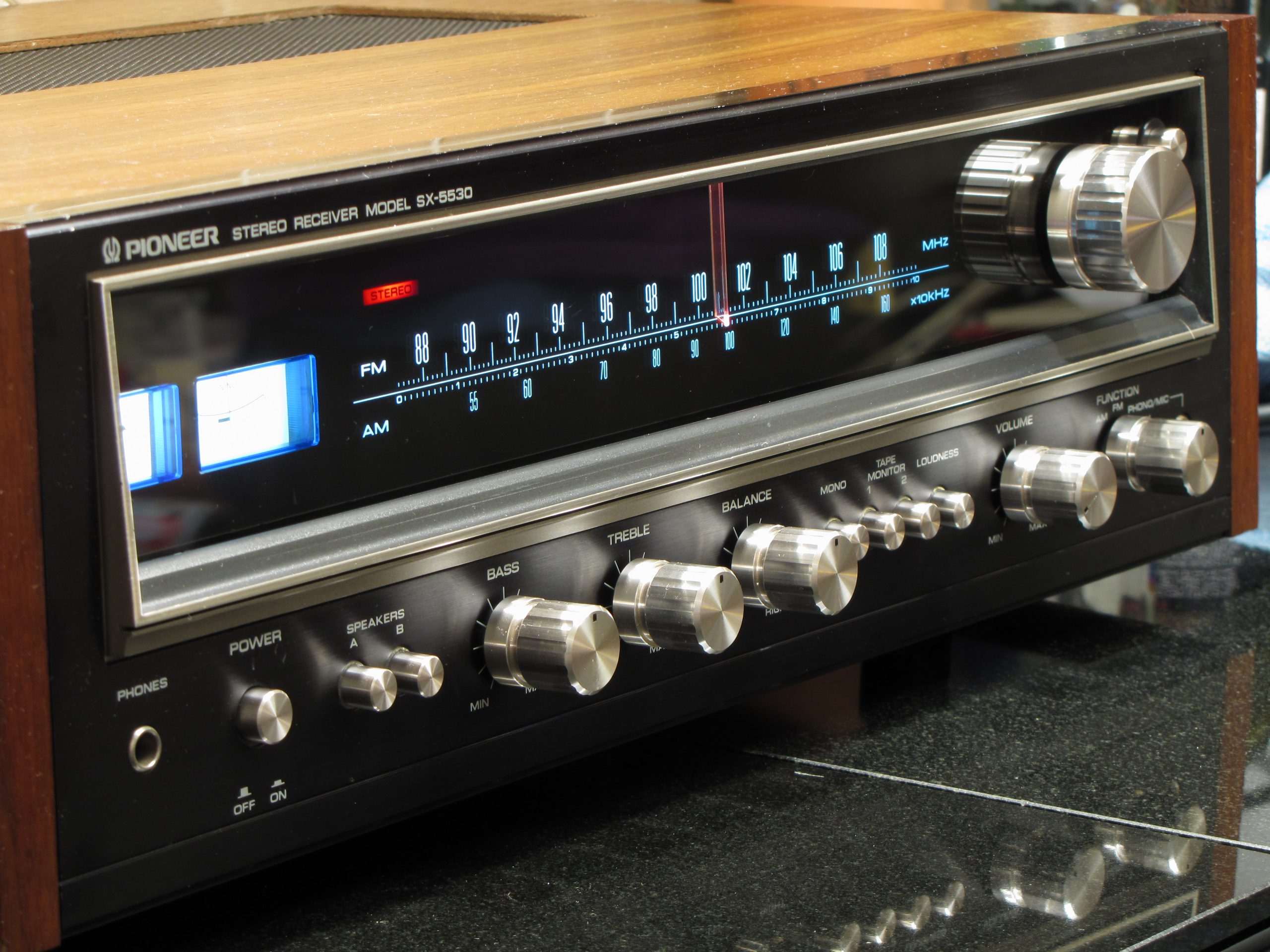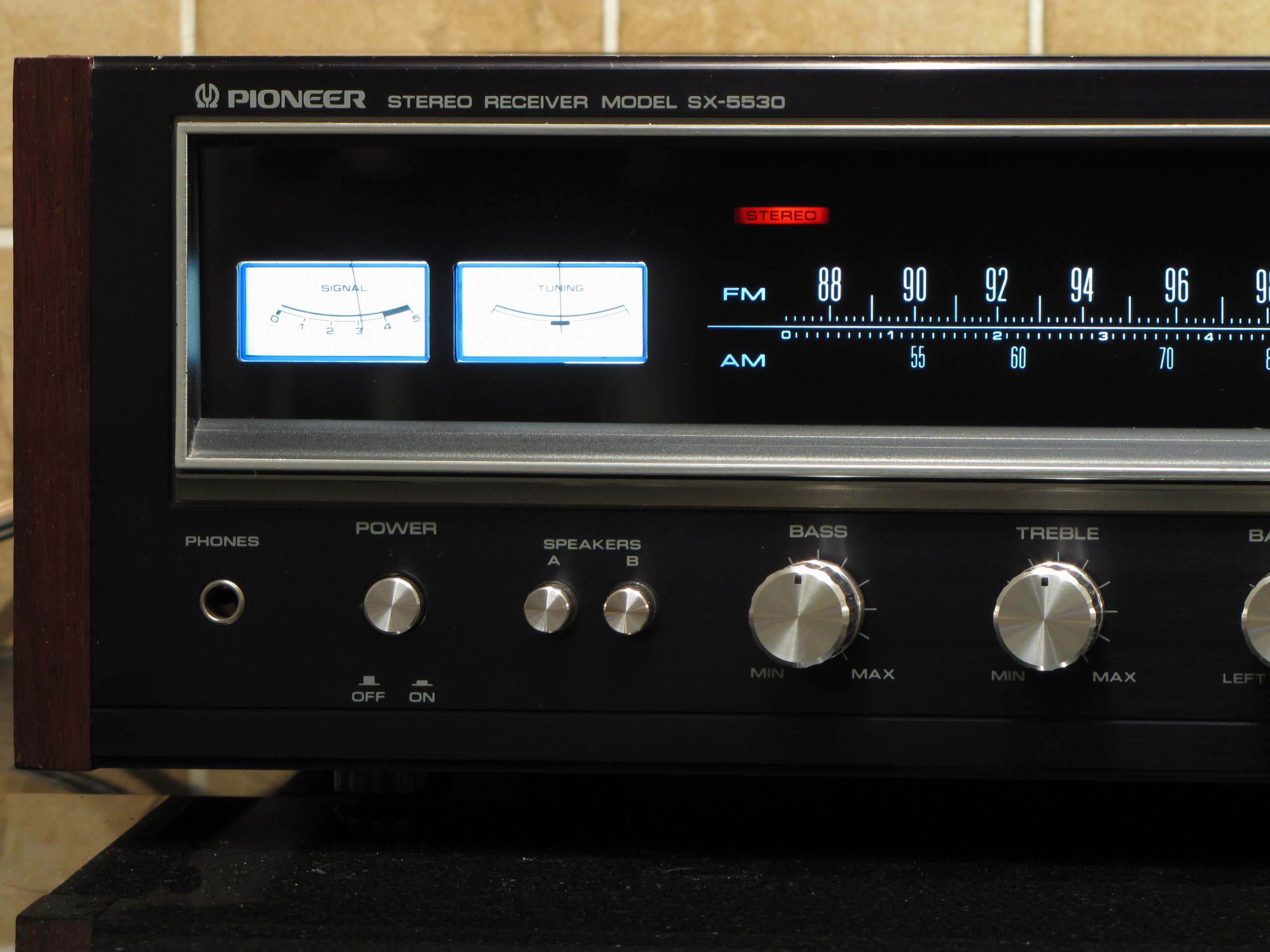 A rare black edition of the Pioneer SX-535, the SX-5530. Internally, these receivers are identical and only the visual styling is different in terms of colour scheme and lighting. The fact that they are finished in anodised black, really sets them apart from the rest, originally designed to be the heart of a custom made stereo system with lots of flexibility.